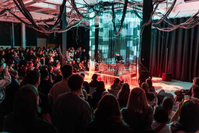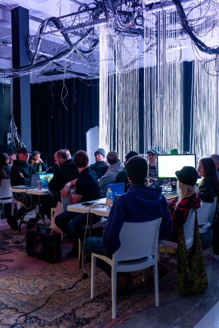 Tak się składa, że nasze biuro znajduje się jedno piętro nad XVY i to był świetny powód, aby zaproponowac im współpracę. Po krótkich rozmowach postanowiliśmy, że najlepszym dniem do foto reportażu będzie sobota, tego dnia między innymi Ksawery miał warsztaty z programowania instalacji świetlnych i odbył się “koncert” Holotrigger, czyli duetu audiowizualnego tworzonego przez Ksawerego i Jacka Prościńskiego - szaleństwo