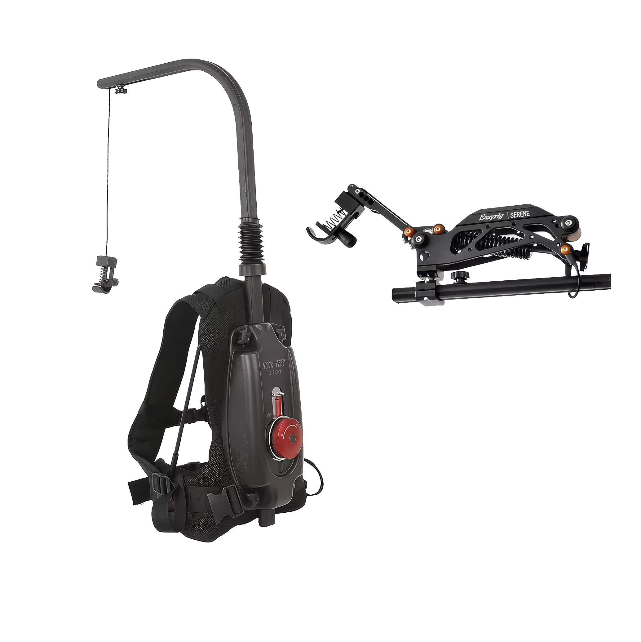 Easyrig + Serene oferuje wyjątkowo płynną stabilizację w dwóch osiach — likwidując drgania pionowe i boczne podczas ruchu — co pozwala uzyskać bardziej filmowy efekt ujęć dynamicznych.